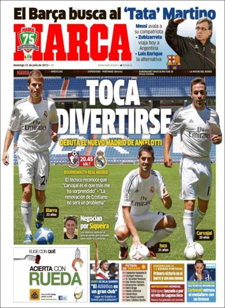 RASSEGNA STAMPA MARCA – Debutta il nuovo Real Madrid di Carlo Ancelotti. Il tecnico riconosce: “Carvajal è quello che mi ha sorpreso di più. Il rinnovo di Cristiano Ronaldo non sarà un problema”.