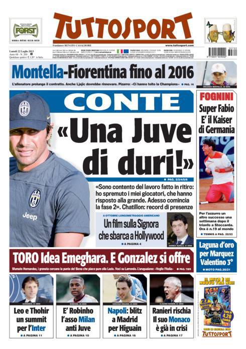 TUTTOSPORT CONTE – Su Tuttosport si parla di Conte che vuole una squadra da duri per la prossima stagione.