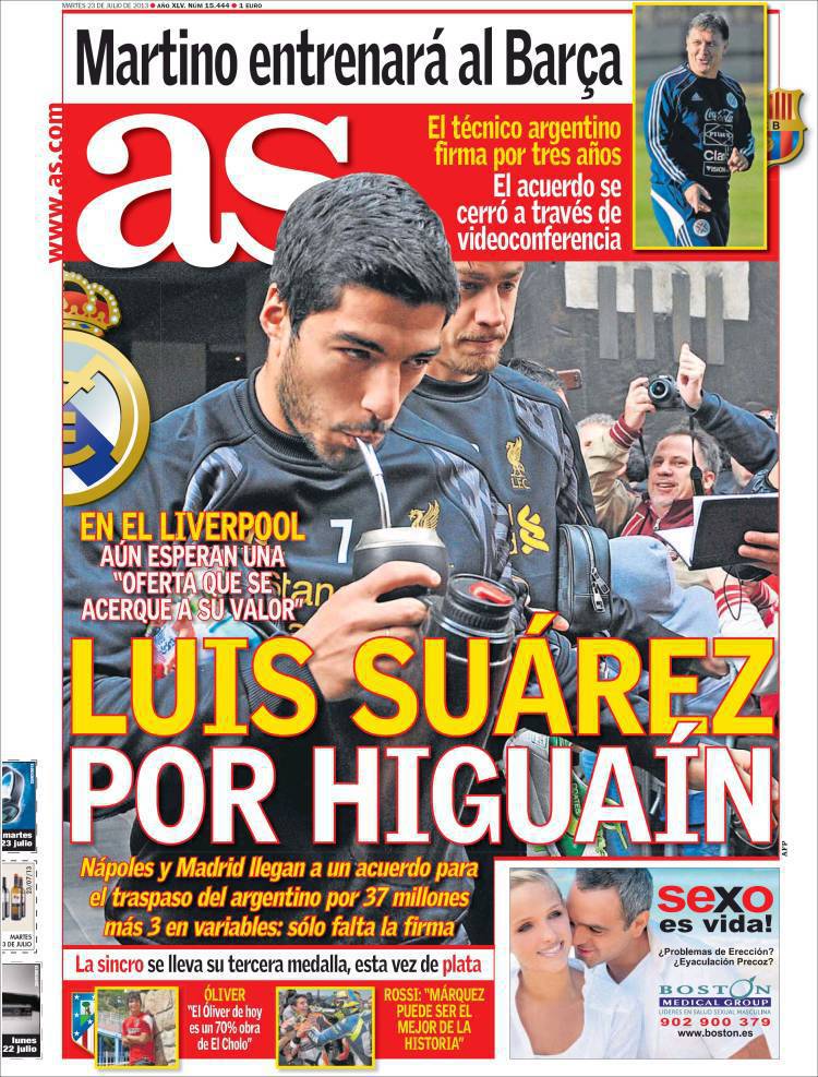 AS SUAREZ HIGUAIN – Prende forma la clamorosa idea di mercato con Suarez a Madrid e Higuain al Liverpool.