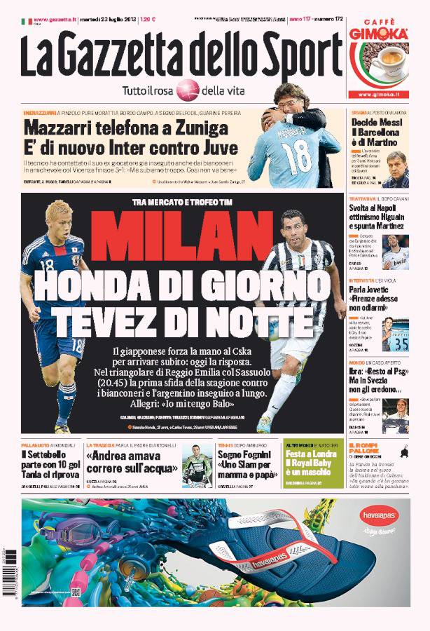 GAZZETTA MILAN – Sulla Gazzetta dello Sport si parla del mercato del Milan che sta stringendo per Honda.