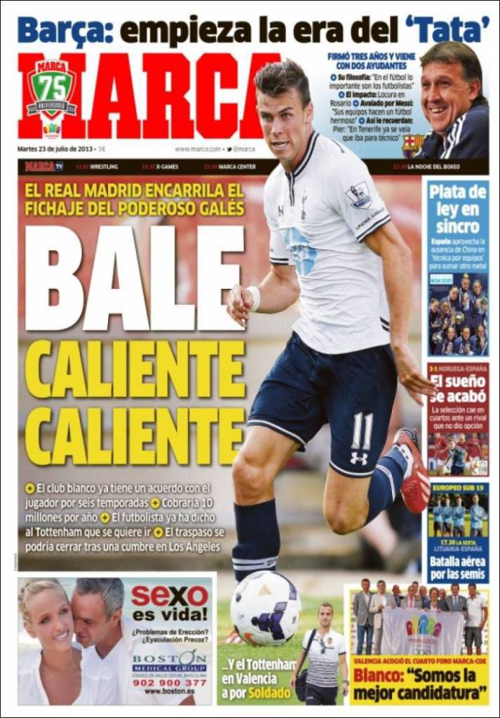 MARCA BALE – Il Real Madrid si avvicina sensibilmente a Bale del Tottenham.