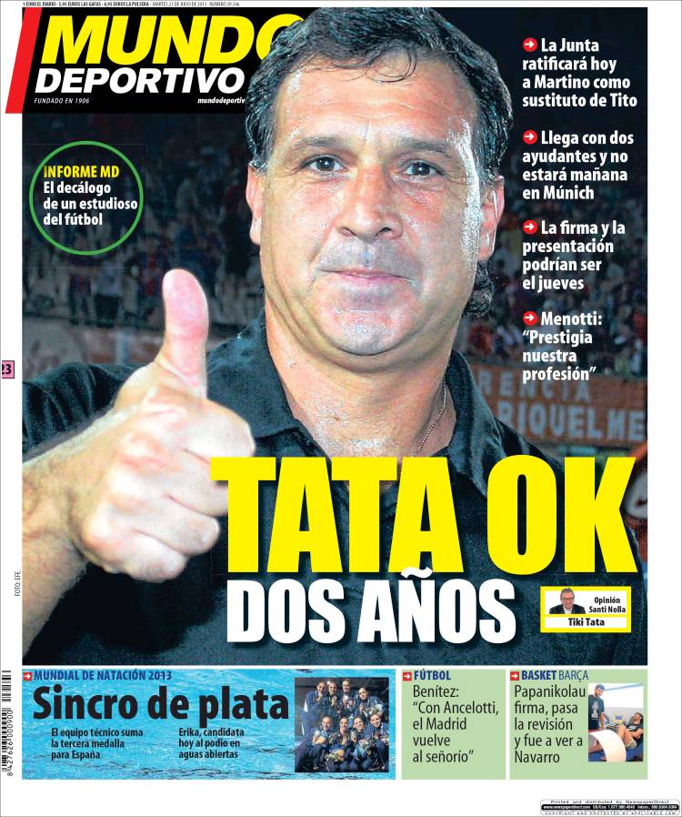 MUNDO DEPORTIVO MARTINO – El Tata Martino nuovo allenatore del Barcellona per i prossimi due anni.