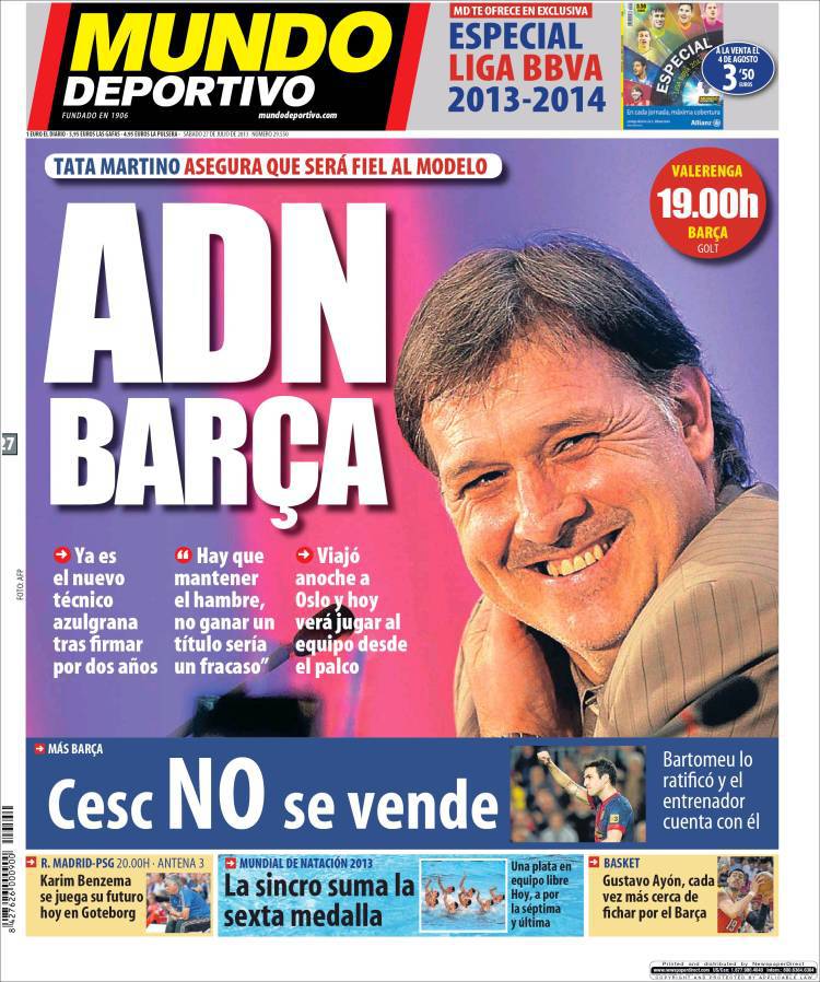 MUNDO DEPORTIVO MARTINO – El Tata Martino ha dichiarato di voler seguire il Dna del Barcellona cercando di trasmettere anche le proprie idee.