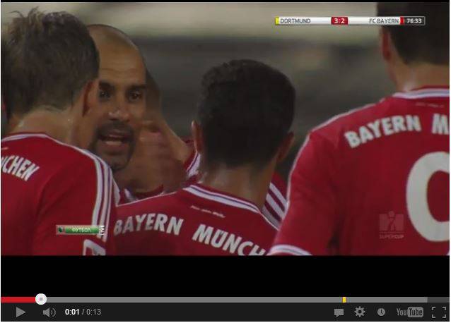 VIDEO GUARDIOLA THIAGO ALCANTARA – Non è iniziata affatto bene l’avventura sulla panchina del Bayern Monaco di Pep Guardiola, tecnico ex Barcellona che ieri sera si è dovuto arrendere alla velocità del Borussia Dortmund di Jurgen Klopp. Un 4-2 difficile da digerire, che ha fatto andare su tutte le furie il posato Pep, ieri protagonista di un curioso episodio. Durante una riunione tecnica con i suoi, Guardiola ha rifilato un ceffone al suo prediletto Thiago Alcantara, arrivato in Baviera dal Barça proprio in questa sessione di mercato. Difficilmente Guardiola sarà riuscito a scuotere la squadra, ma certamente ci sarà riuscito con il giovane spagnolo.