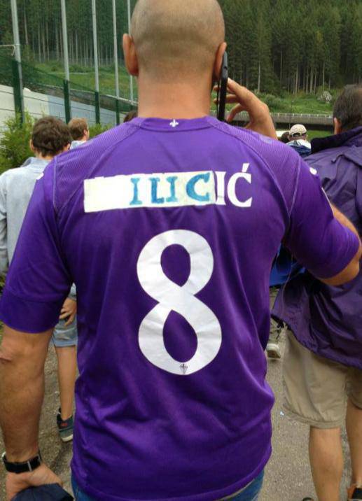 FOTO FIORENTINA JOVETIC – La goliardia dei toscani è nota ed impareggiabile anche sul piano calcistico. Non è difficile ricordare come i tifosi della Fiorentina, da sempre si siano resi protagonisti di coreografie simpatiche e ironiche, soprattutto nei confronti degli acerrimi rivali della Juventus. In questo caso la Juventus c’entra per vie trasverse visto che, a causa delle dichiarazioni di Stevan Jovetic che poco tempo fa aveva spiegato di sognare la Juventus, il ricordo del campione montenegrino a Firenze è andato un po’ sbiadendosi. Per alcuni, l’addio di Jovetic, come potete vedere nella foto, è stata anche la possibilità di sfoggiare una nuova maglia: sostituendo alcune lettere del cognome dell’ex numero 8 viola, si può infatti comodamente comporre il cognome di un nuovo acquisto della Fiorentina, l’ex Palermo Ilicic. Una sana risata, ed un bello schiaffo alla crisi.