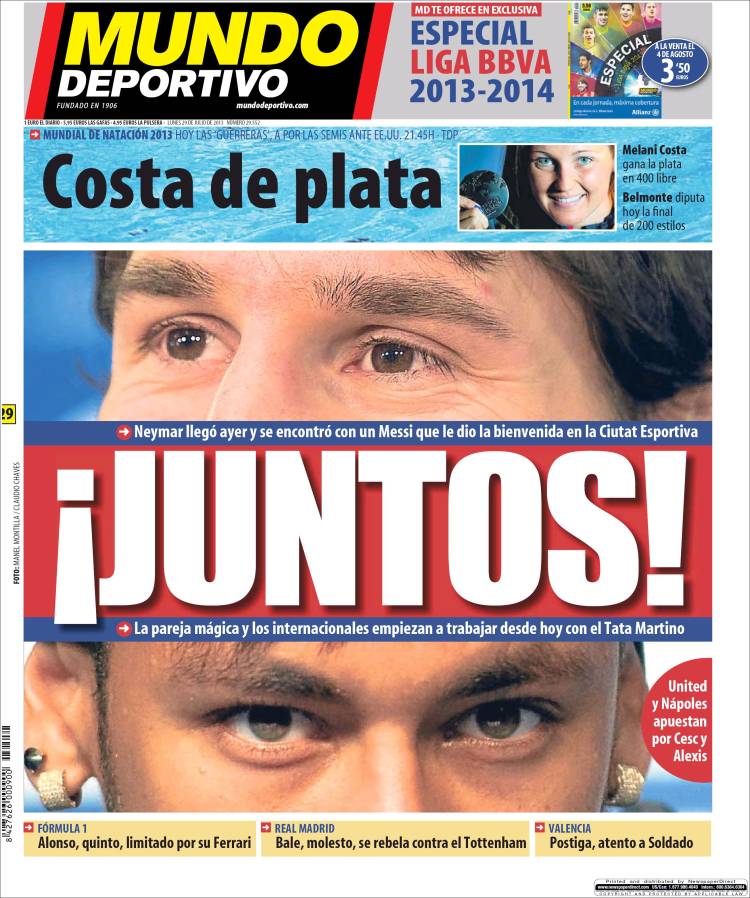MUNDO DEPORTIVO BARCELLONA – Sul quotidiano Mundo Deportivo si parla di Neymar e Messi che dovranno giocare assieme.