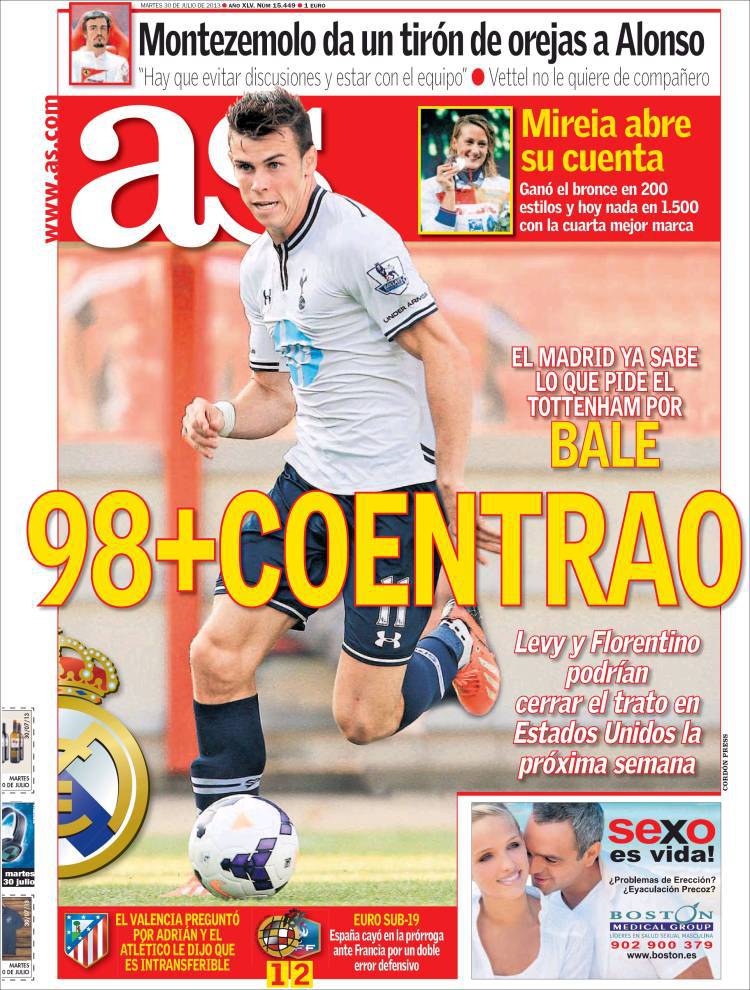 AS BALE – Super offerta del Real Madrid che è pronto a offrire 98 milioni di euro più Coentrao.