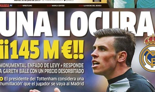 CALCIOMERCATO BALE – E’ una richiesta decisamente shock quella del Tottenham al Real Madrid per Gareth Bale. Stando a quanto riporta il quotidiano spagnolo Marca, gli Spurs avrebbero richiesto in cambio del cartellino dell’esterno gallese ben 145 milioni di euro, pari a quanto speso dal PSG e dal Barcellona per Cavani e Neymar con l’aggiunta di altri 25 milioni di euro. Resta da capire se si tratti di una proposta provocatoria o meno fatto sta che nel caso in cui il Real dovesse accogliere tale richiesta darebbe vita all’operazione più clamorosa della storia del mercato.