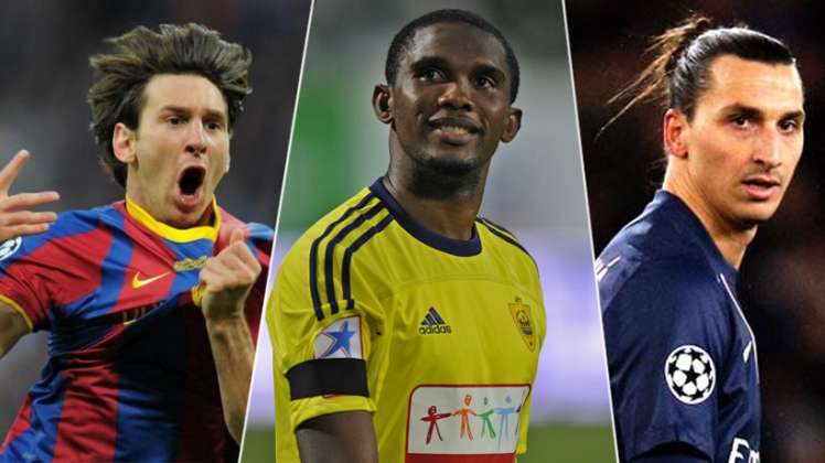 TOP 10 DIECI CALCIATORI PIU’ PAGATI AL MONDO – Nel dorato mondo del calcio, ci sono i paperoni in grado di comprare qualsiasi cosa. I calciatori, infatti, sono una delle categorie professionali in cui si guadagna di più. Ma chi sono i paperoni del 2013? Al primo posto, con un guadagno di 20 milioni all’anno, si piazza Eto’ò. Secondo posto per Lionel Messi nelle cui tasche finiscono ogni anno 16 milioni. Solo terzo Zlatan Ibrahimovic con ben 14.5 milioni. Al quarto posto troviamo Falcao che al Monaco guadagnerà ben 14 milioni. Quinta posizione per Rooney con 1.38 milioni mentre al sesto posto troviamo Sergio Aguero con 1.35 milioni. Settimo posto per Tourè con 13 milioni mentre all’ottavo posto c’è Thiago Silva con 12 milioni. Nona posizione per Fernando Torres con 10.8 milioni mentre all’ultimo posto c’è Darío Conca del Guangzhou Evergrande con 10.6 milioni.