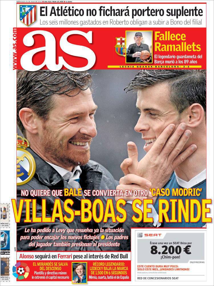 AS VILLAS BOAS BALE – Il quotidiano As si parla di Villas Boas che ormai sa di perdere Bale.