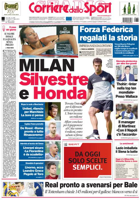 CORRIERE MILAN – Sul Corriere dello Sport si parla del Milan che ha preso Silvestre ed è vicinissimo a Honda.
