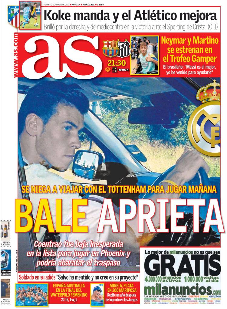 AS BALE – Sul quotidiano As si parla di Bale, il Real Madrid sta stringendo per il giocatore gallese.