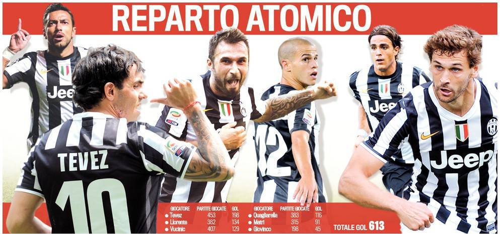 FOTO CALCIOMERCATO JUVENTUS 613 GOL SENZA OFFERTE – 6 punte a disposizione, sono un po’ troppe, lo ha spiegato Antonio Conte alla società. Marotta ha recepito e sta lavorando per cederne una del ricco lotto bianconero. Sono ben 613 i gol messi a disposizione dagli attaccanti della Juventus e le statistiche parlano chiaro: è davvero un attacco spaziale. Certo che bisognerà tagliare uno dei 6 e chi dovrà lasciare, sarà deciso dal mercato. Solo ed esclusivamente nel caso di offerta di livello infatti, la Juventus si priverà di una delle sue bocche da fuoco. Tranne i nuovi acquisti, tutti importanti, nessuno indispensabile.