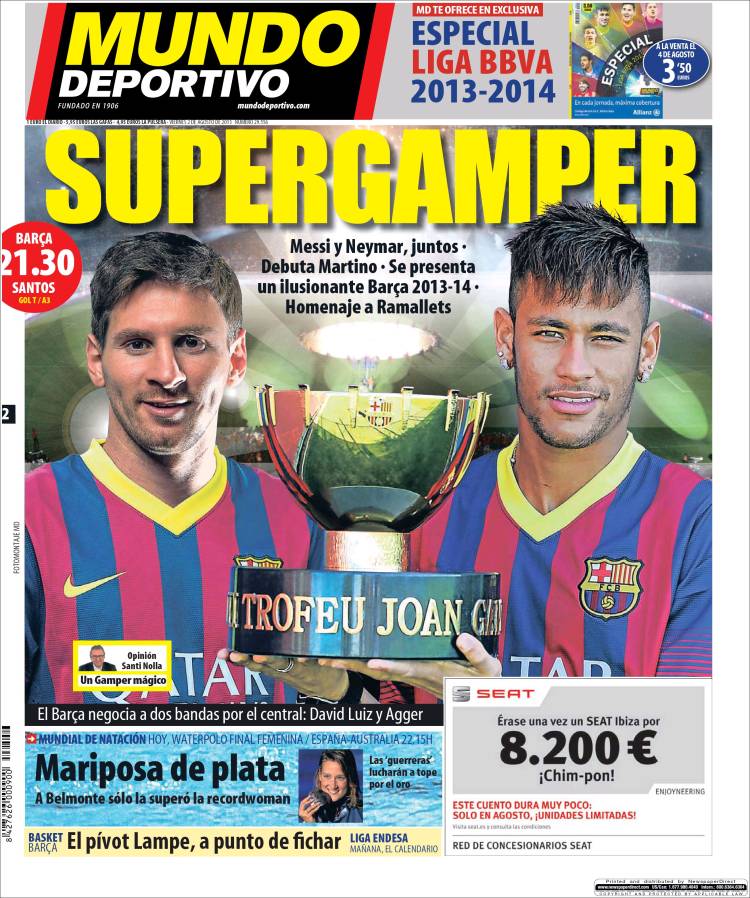MUNDO DEPORTIVO TROFEO GAMPER – Sul quotidiano Mundo Deportivo si parla del trofeo Gamper che si disputerà oggi tra Barcellona e Santos.