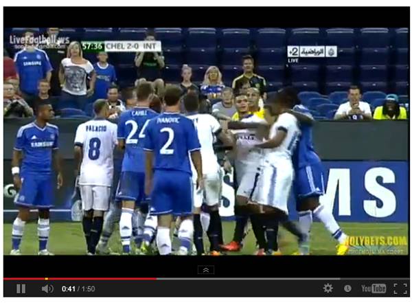 VIDEO FALLACCIO CAMPAGNARO – Tutt’altro che un’amichevole la sfida fra il Chelsea e l’Inter giocatasi ieri, valevole per la Guinness Cup. Durante il match Hugo Campagnaro, difensore nerazzurro, è entrato durissimo su Terry, con conseguente espulsione e facendo innervosire non poco i blues in campo: rissa sfiorata poi sedata… Di seguito il video dell’accaduto.