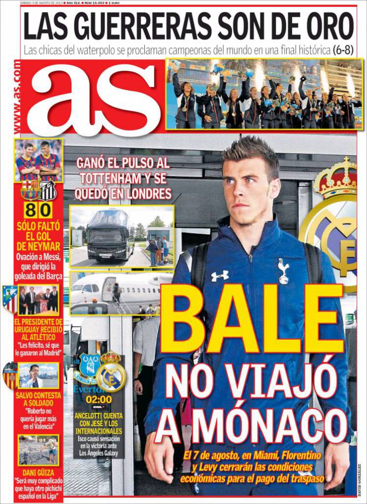 AS BALE – Gareth Bale si rifiuta di seguire la squadra, vuole il Real Madrid a tutti i costi.
