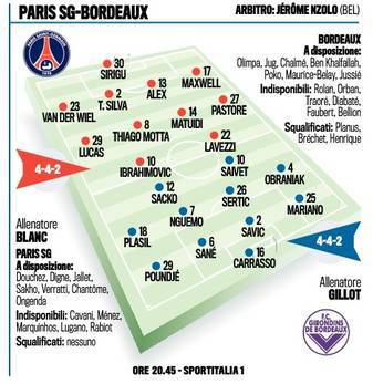 FOTO FRANCIA PSG BORDEAUX – Parte ufficialmente oggi la stagione francese con la finale della Supercoppa di Francia. Si sfideranno il Paris Saint Germain, campione della Ligue 1, ed il Bordeaux, vincitore della Coupe de France. L’esito della gara, a leggere le formazioni, pare scontato. Non sarà però l’occasione di vedere in campo i nuovi fenomenali acquisti del club parigino: sia Cavani, che Marquinhos, sono infatti indisponibili per la gara che potrete vedere in diretta alle 20.45 su Sportitalia 1. Ibra e compagni, alla conquista del primo trofeo stagionale; Laurent Blanc alla prima ufficiale sulla panchina del PSG contro il suo passato; il Bordeaux in campo per sorprendere il mondo. La ricetta è pronta: sarà una gara imperdibile.