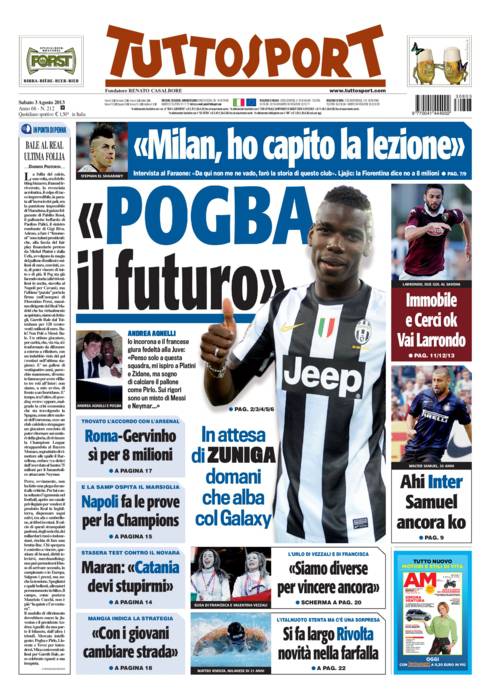 TUTTOSPORT POGBA – Su Tuttosport si parla di Pogba che il presidente della Juventus Agnelli ha definito giocatore del futuro.