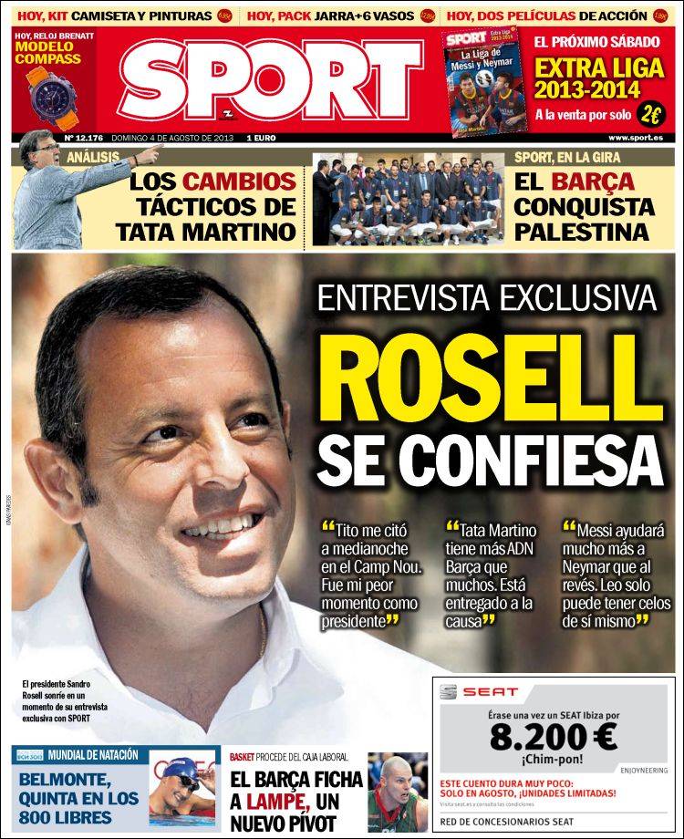 RASSEGNA STAMPA SPORT – Il presidente del Barcellona, Rosell, si confessa in un’intervista esclusiva al quotidiano sportivo Sport parlando di tutto. “Tito mi ha chiamato a mezzanotte al Camp Nou. E ‘stato il peggio momento come presidente. Tata Martino ha le qualità per fare ben al Barca”,