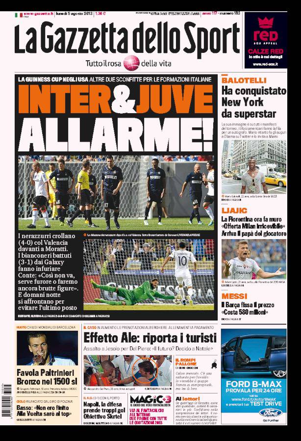 GAZZETTA INTER JUVENTUS – Inter e Juventus fanno una figuraccia in America perdendo contro Valencia e Los Angeles Galaxy.