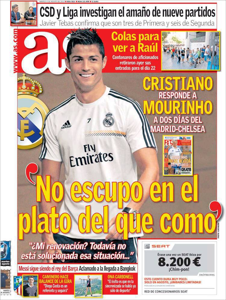 AS RONALDO – Sul quotidiano As si parla di Ronaldo che risponde per le rime a Mourinho.