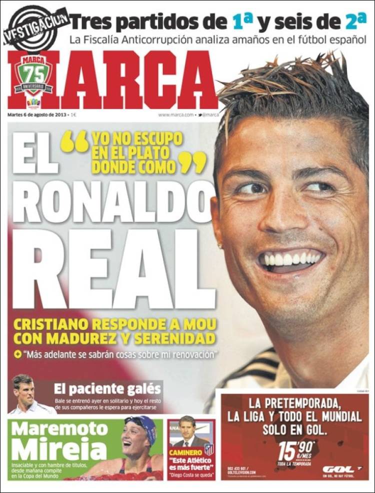 MARCA RONALDO – Cristiano Ronaldo vicino al rinnovo con il Real Madrid risponde anche a Mourinho.