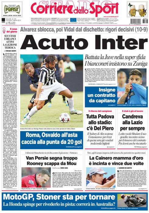 CORRIERE INTER – Sul Corriere dello Sport si parla dell’Inter che vince ai rigori contro la Juventus.