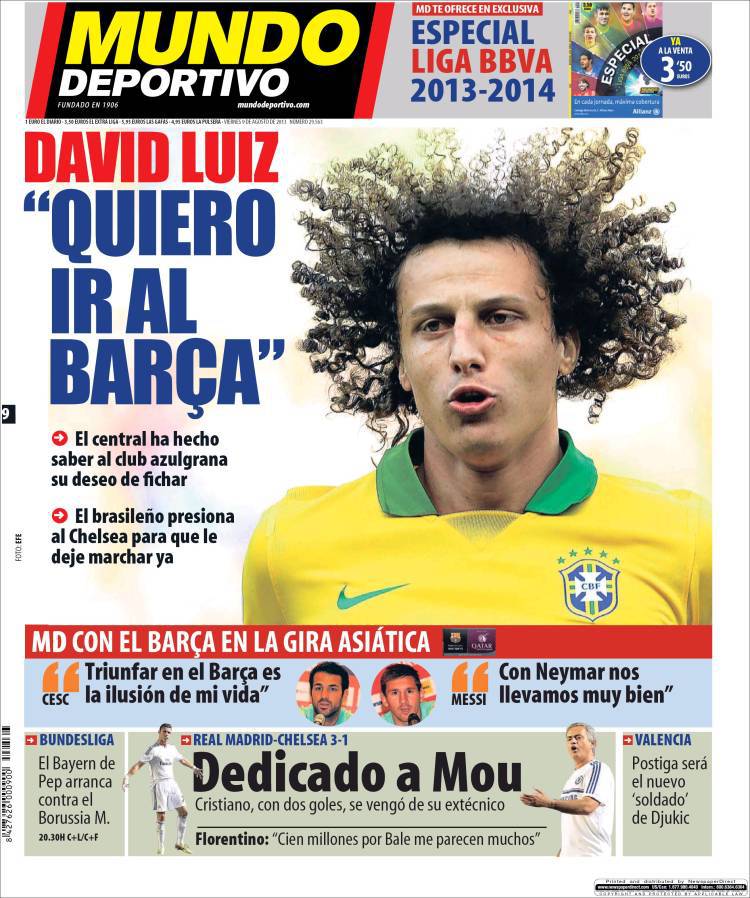 MUNDO DEPORTIVO BARCELLONA – Sul quotidiano Mundo Deportivo si parla di David Luiz che vuole andare al Barcellona.