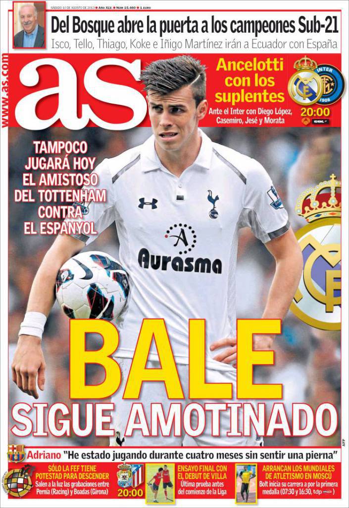 AS BALE – Sul quotidiano As si parla di Bale che continua l’ammutinamento contro il Tottenham perché vuole andare al Real Madrid.