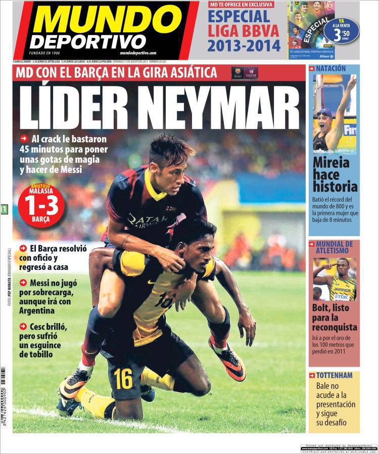 MUNDO DEPORTIVO LEADER NEYMAR – E’ da pochi mesi al Barcellona, ma è già riuscito ad integrarsi perfettamente negli schemi del Barcellona. Neymar leader, lo incorona il quotidiano “Mundo Deportivo”.