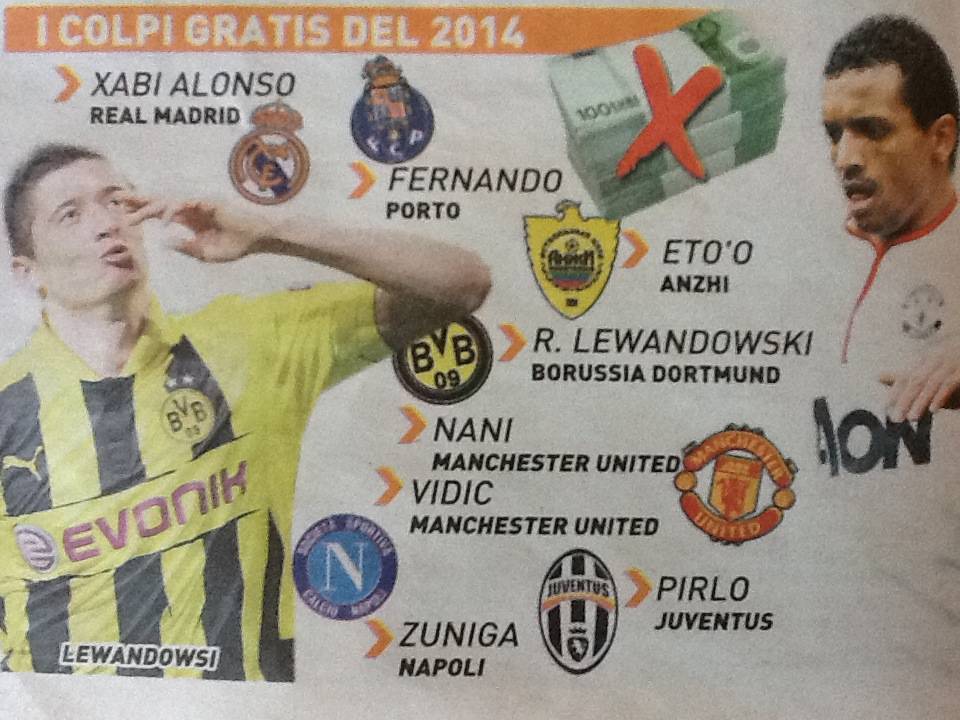 CALCIOMERCATO LEWANOWSKI XABI ALONSO NANI – Tutti questi giocatori che vedete in foto (fonte: La Nazione) hanno il contratto in scadenza con i rispettivi club nel 2014: esattamente fra un anno, mese più mese meno. Il che significa che potranno trasferirsi in altre squadre a parametro zero. A questo proposito molte compagini nostrane avrebbero l’opportunità di riesumare dall’oblio pezzi da novanta scaricati troppo in fretta. Basta leggere i nomi. Il più appetitoso è Robert Lewandowski, attaccante polacco del Borussia Dortmund che rischia di lasciare i gialloneri senza far entrare un soldo nelle casse del club tedesco. Sempre nel reparto offensivo troviamo poi Eto’o dall’Anzhi anche se il camerunense potrebbe convincere i dirigenti della squadra russa a rescindere l’ultimo anno di contratto. Dalla Spagna spicca il nome di Xabi Alonso. Per la difesa un buon colpo sarebbe quello di Vidic (Manchester United): sempre nei Red Devils da monitorare anche la situazione di Nani. In Italia a rischio svincolo troviamo Pirlo e Zuniga.