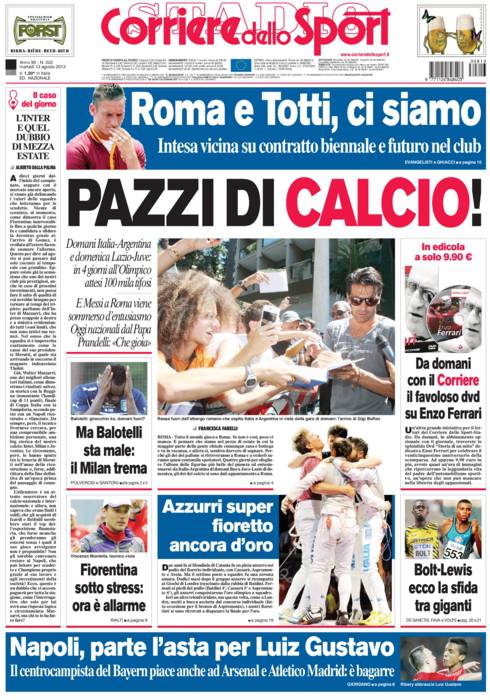 CORRIERE TOTTI – E’ vicino il rinnovo di Francesco Totti con la Roma. Il capitano firmerà il nuovo contratto.