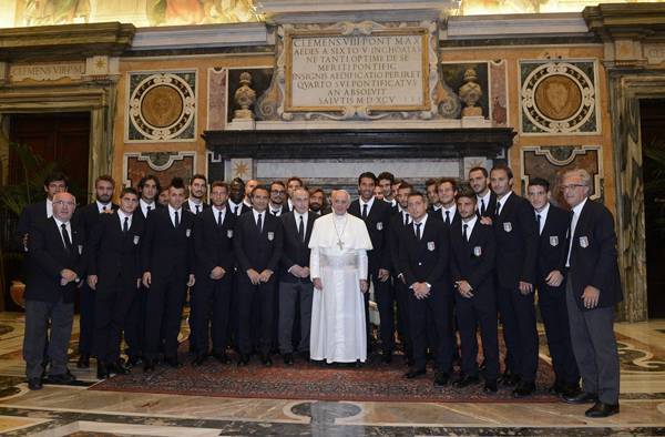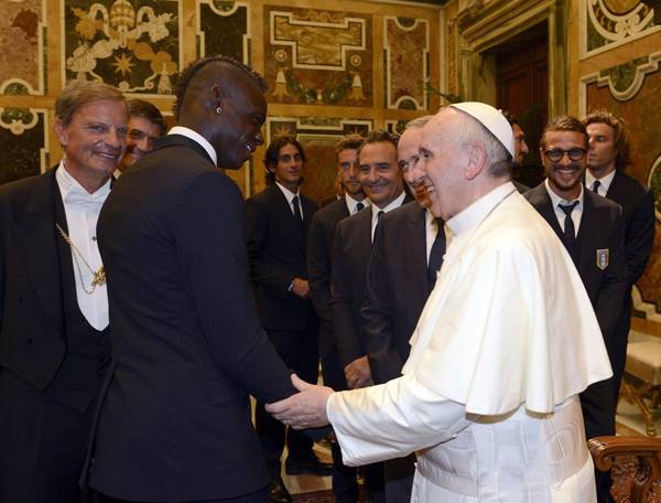FOTO BALOTELLI PAPA – Di seguito le foto dell’incontro di oggi in Vaticano fra la Nazionale il Papa Francesco in occasione dell’amichevole fra l’Italia e l’Argentina. Purtroppo però alla sfida di domani sera non potranno presenziare sia Balotelli quanto Messi, le stelle delle due squadre. Per il primo c’è un leggero versamento al ginocchio, infortunio non ancora guarito, mentre la Pulce soffre di una contrattura alla gamba sinistra.