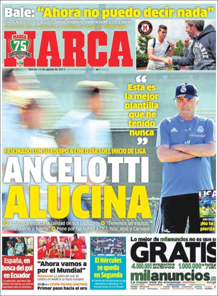 MARCA ANCELOTTI – Carlo Ancelotti non smette mai di complimentarsi con i propri giocatori. Il Real Madrid è già pazzo di mister Carlo.