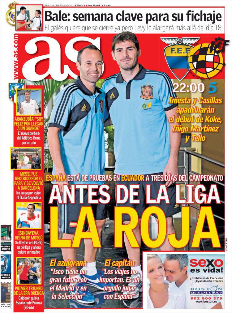 AS LIGA – Sul quotidiano As si parla della Spagna che giocherà contro l’Ecuador prima dell’inizio della Liga.