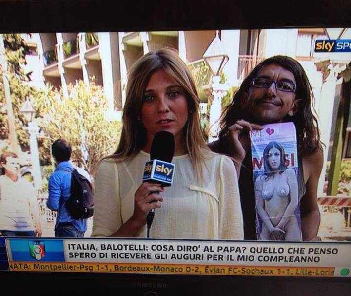 FOTO SKY SPORT DISTURBATORE – Ci risiamo. Ancora una volta Gabriele Paolini, noto “disturbatore” di servizi televisivi, torna a far parlare di sè. Questa volta la vittima della sua attività particolare è stata la giornalista di Sky Sport 24 la quale, durante la presentazione di un servizio, si ritrova a sua insaputa l’uomo alle sua spalle con la foto di una donna in versione osè. Non è la prima volta che accade una cosa simile ma in questo caso si può dire che il disturbatore in questione abbia anticipato tutti e sia riuscito nel suo intento.