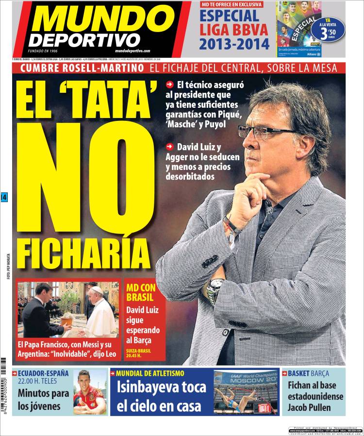 MUNDO DEPORTIVO MARTINO – Sul quotidiano Mundo Deportivo si parla di Martino che non vuole altri acquisti.