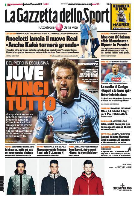 GAZZETTA DELLO SPORT PRIMA PAGINA – Di seguito la prima pagina de La Gazzetta dello Sport di oggi, 17 agosto 2013.