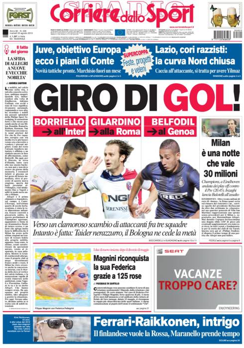 CORRIERE ATTACCANTI – Borriello verso l’Inter, Belfodil verso il Genoa, Gilardino a Roma.