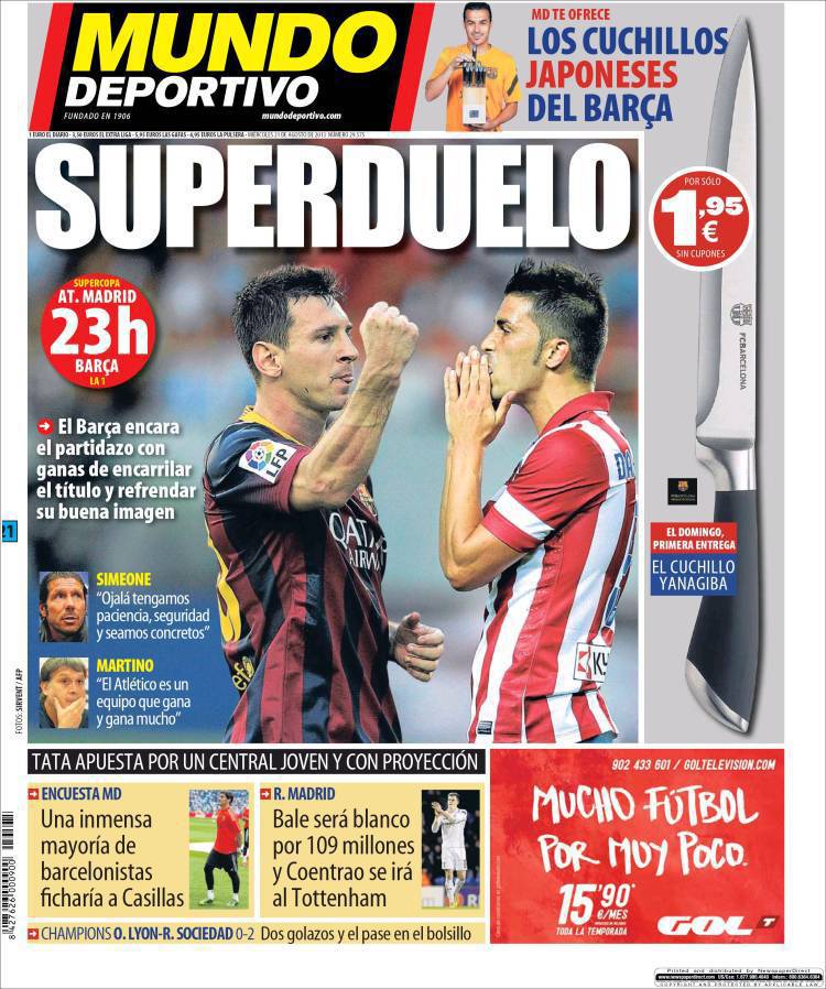Mundo Deportivo: SuperDuello 21/08/2013 di Admin3 MUNDO DEPORTIVO MESSI VILLA – Messi contro Villa, questa sera il Barcellona sfiderà l’Atletico Madrid dell’ex bomber iberico. La redazione di Calciomercatonews.com