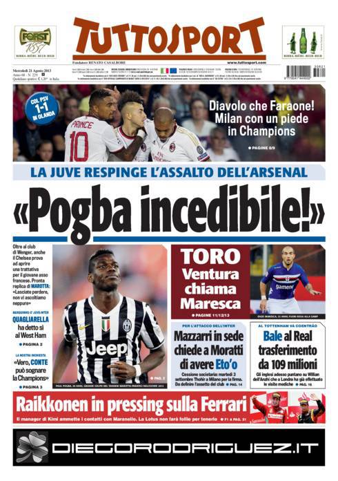 TUTTOSPORT POGBA – Su Tuttosport si parla di Pogba dichiarato incedibile dalla Juventus.