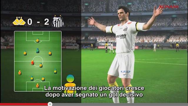 VIDEO PES HEART MOTIVAZIONE – Il nuovo episodio di PES promette benissimo. Le prime anticipazioni, immagini e vari tutorial hanno mostrato come il videogame targato Konami si sia riportato ai suoi livelli dopo un periodo di declino vista l’ascesa di FIFA. Nel video che vi proponiamo quest’oggi ecco un elemento di innovazione rispetto al passato. Stiamo parlando dell'”heart” ovvero della motivazione dei giocatori virtuali. Ebbene, i gol decisivi degli attaccanti e le papere dei portieri, influenzeranno positivamente o negativamente il livello di motivazione. Questo a sua volta potrà determinare, per esempio, l’esito di un calcio di punizione: più la motivazione del tiratore è alta, più la possibilità di segnare sale. Determinante sarà anche il supporto dei tifosi i quali con i loro incitamenti faranno crescere l’Heart dei singoli giocatori e le loro statistiche.