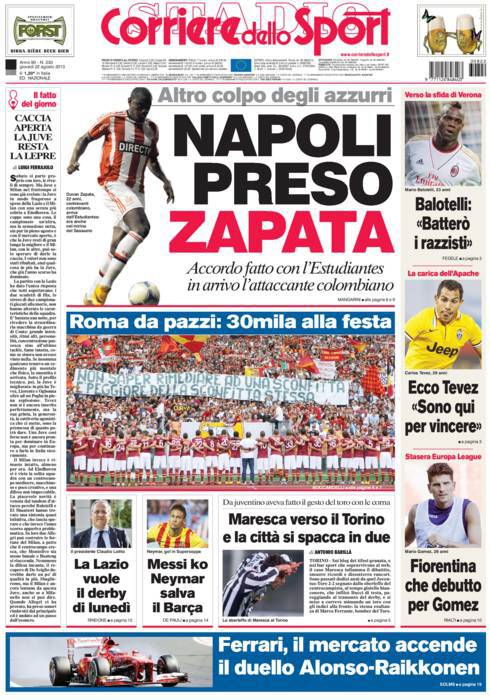 CORRIERE NAPOLI – Duvan Zapata sarà l’alternativa di Higuain nello scacchiere di Benitez a Napoli.