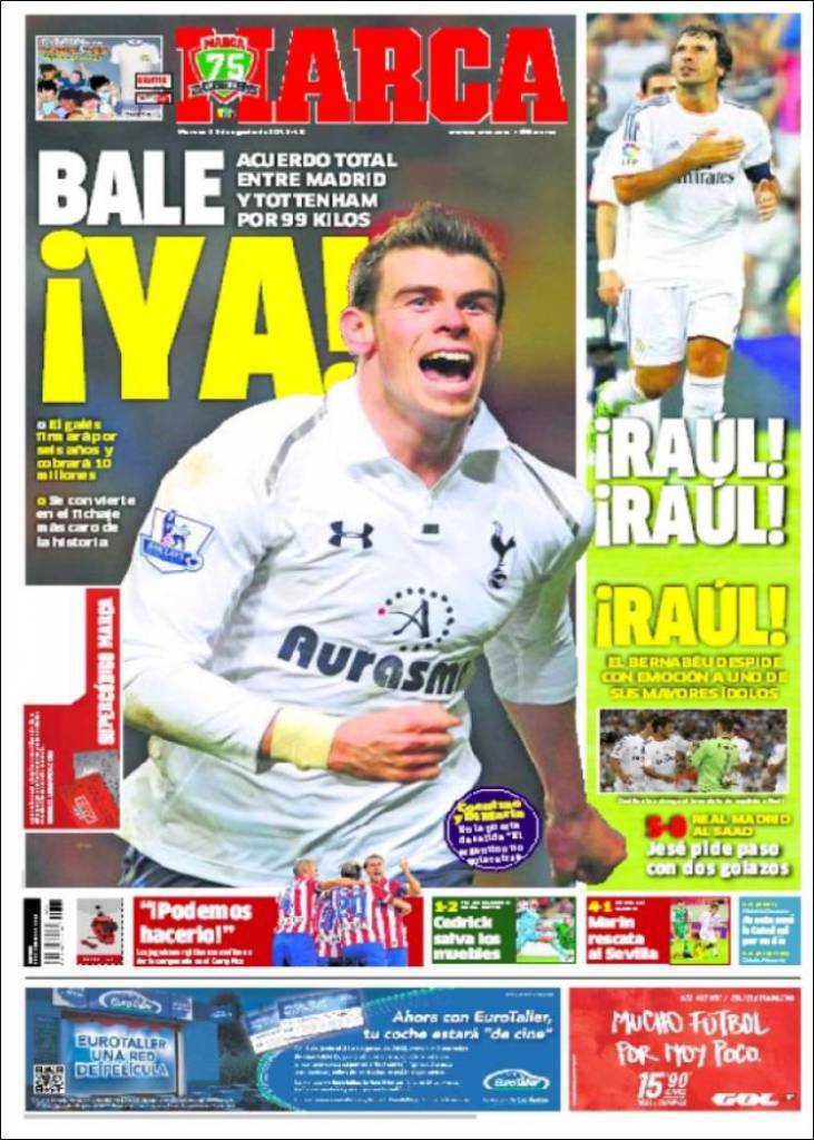MARCA BALE – Accordo totale tra Real Madrid e Tottenham per l’arrivo di Bale a Madrid.