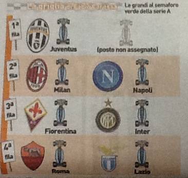 CARESSA FOTO JUVENTUS SERIE A- La Serie A inizierà fra poche ore. Fabio Caressa, noto telecronista Sky e da luglio anche direttore di Sky Sport, ha rilasciato un’interessante intervista a La Nazione riguardo la griglia di partenza del nostro campionato. Quale squadra parte favorita? Bene, come si vede in foto, il club da battere secondo Caressa resta sempre la Juventus. “In pole c’è la Juve anche se quest’anno saranno molto concentrati sulla Champions. L’altro posto della pole – afferma Caressa – lo lascio vuoto perchè adesso non ci sono squadre a livello dei bianconeri. In seconda fila il Milan, perchè ha continuità con l’anno scorso in più ha Balotelli decisivo come Ibra, e accanto il Napoli. In terza fila Fiorentina, se non corre il rischio di sentirsi forte, e Inter. In quarta fila le romane“.