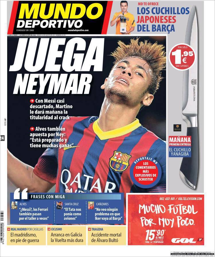 MUNDO DEPORTIVO NEYMAR – Sul quotidiano Mundo Deportivo si parla di Neymar che giocherà titolare al posto di Messi.