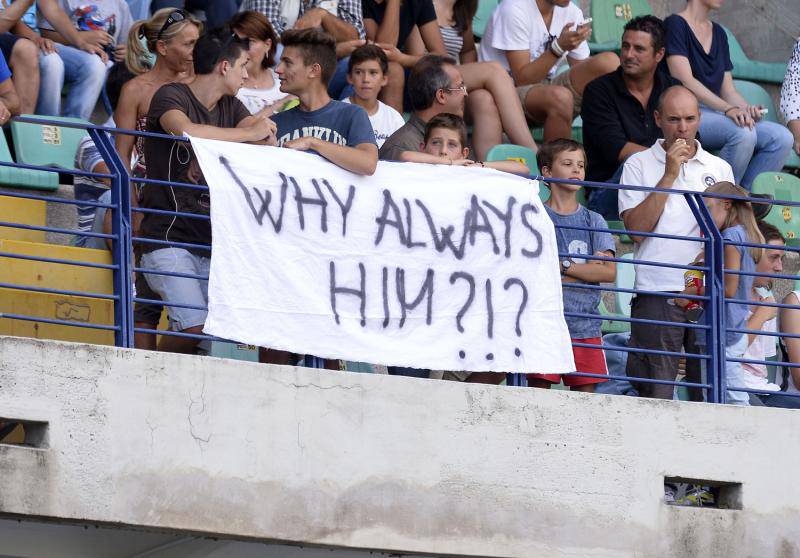VERONA MILAN SFOTTO’ PER BALOTELLI – Verona-Milan, oltre a Luca Toni che è stato il protagonista sul campo, ha avuto anche un’altra prima donna, Mario Balotelli che è stato il bersaglio preferito dei tifosi del Verona per tutti i novanta minuti. Dopo le polemiche della settimana in seguito alle dichiarazioni del sindaco di Verona che ha invitato Super Mario ad essere meno antipatico se non vuole essere beccato dai tifosi avversari, oggi, i sostenitori dell’Hellas hanno risposto con intelligenza applaudendo Balotelli ogni volta che toccava il pallone in segno di provocazione. Sugli spalti, poi, è spuntato uno striscione che diceva: “Why always him?” Ricordando l’avventura di Mario Balotelli al Manchester City.