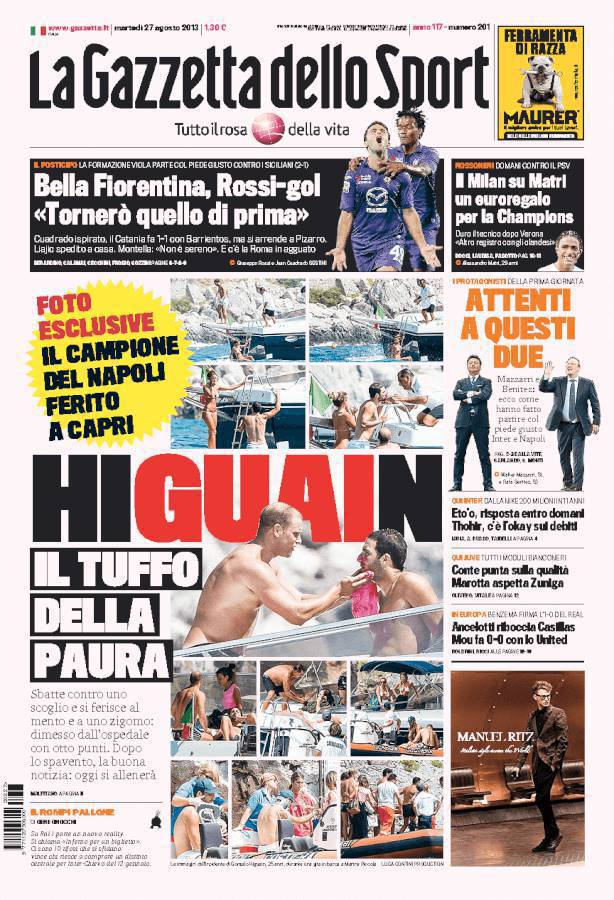GAZZETTA HIGUAIN – Sulla Gazzetta dello Sport le immagini esclusive dell’incidente di Higuain in barca.