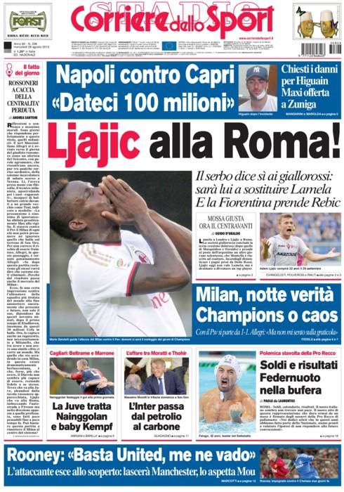 CORRIERE LJAJIC – Sul Corriere dello Sport si parla di Ljajic che ha detto sì alla Roma.