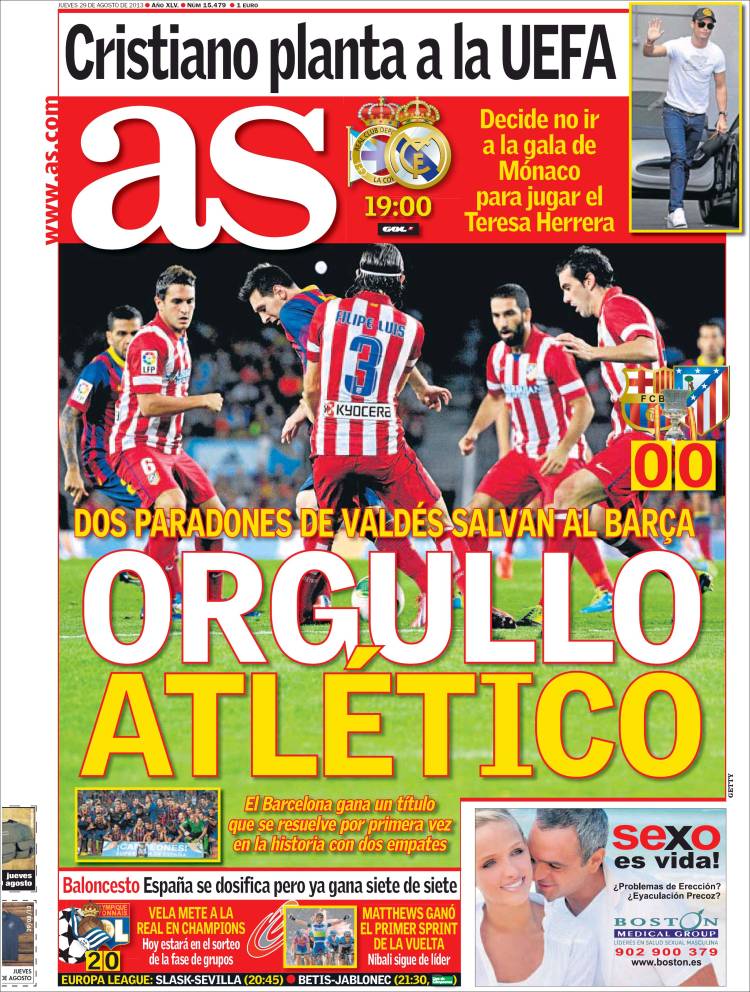 AS ATLETICO MADRID – L’Atletico Madrid pareggia a zero a zero al Camp Nou contro il Barcellona e perde la Supercoppa.